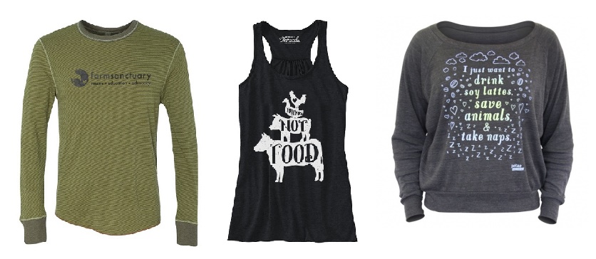 Message gear – What better way to promote veganism that with a shirt, hat or button? Herbivore Clothing, Farm Sanctuary, Compassion Co, Triple Threads, PETA, and The Tree kisser are just a few of the places that have great designs–from whimsical to hardcore.