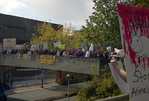 bridge with protesters Published April 27, 2015 at 500 × 340 in No New Animal Lab ← Previous Next → bridge with protesters