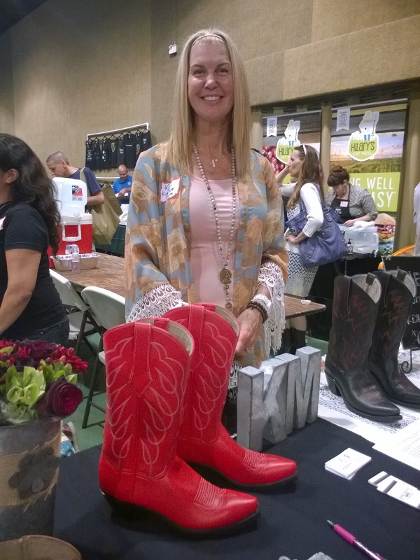 I also met Kat, creator of Kick Butt Boots–custom, handmade vegan cowboy boots. Everyone had their eye on a striking red pair. How cute would they be with jeans or a fun, flowy dress?
