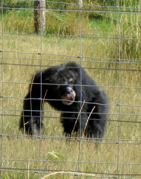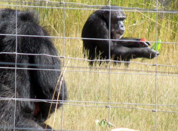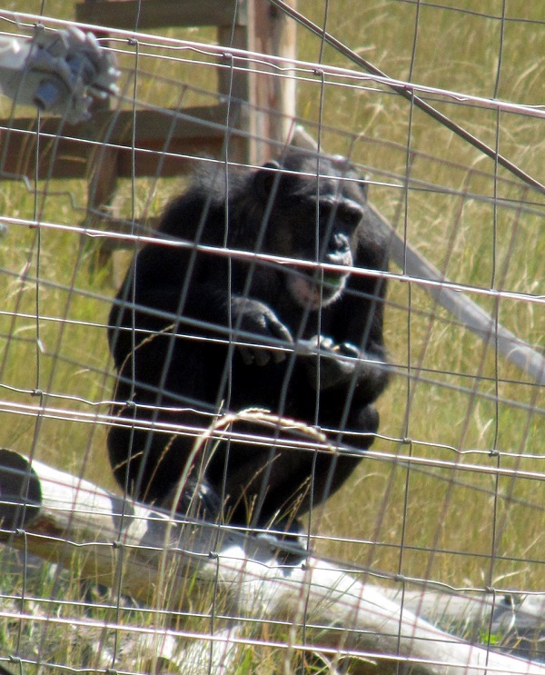 The sanctuary is home to Jamie, Annie, Jody, Foxy, Missy, Burrito, and Negra. I visited over the lunch hour and watched the chimps forage for a meal. Volunteers hide food over Young’s Hill, the chimps two-acre outdoor enclosure, so they have an experience closer to how wild chimps find food.