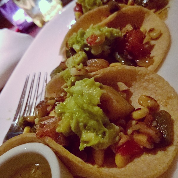 I put my egg in a taco with crumbled Field Roast Sausage and Parmela Creamery aged vegan cheddar shreds because I recently bought The Taco Cleanse cookbook and met real taco scientists and tacos seems like a great way to start the day.